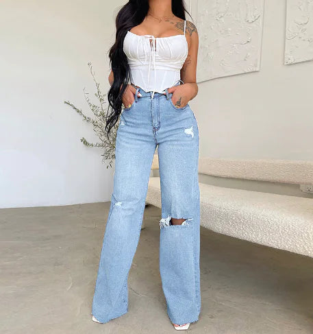 High Rise High Waist Distressed Jeans